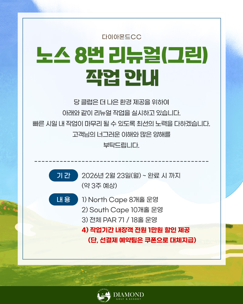 노스 8번 리뉴얼(그린) 작업 안내